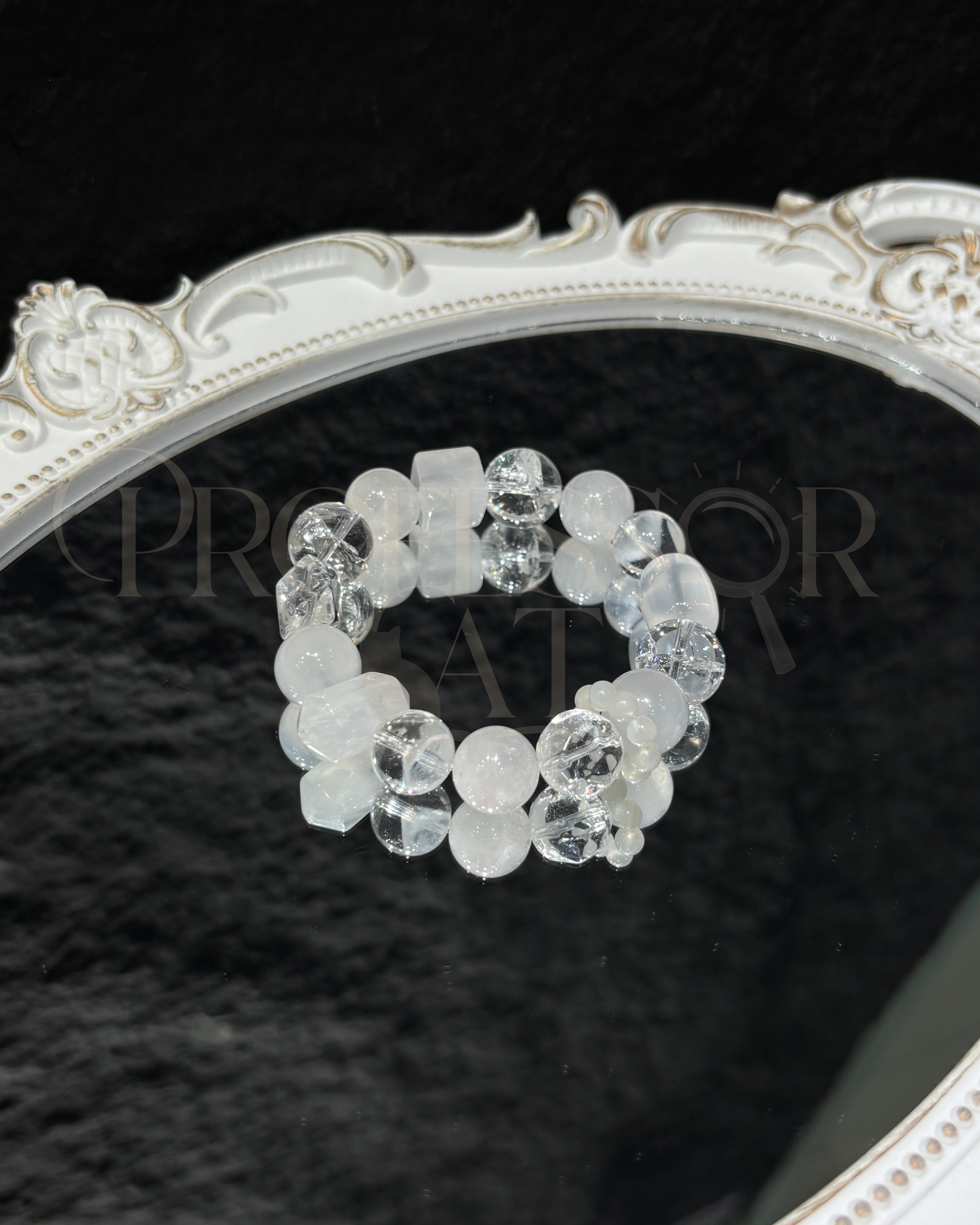 Blue Moonstone + White Azeztulite + White Phantom + Milky Quartz